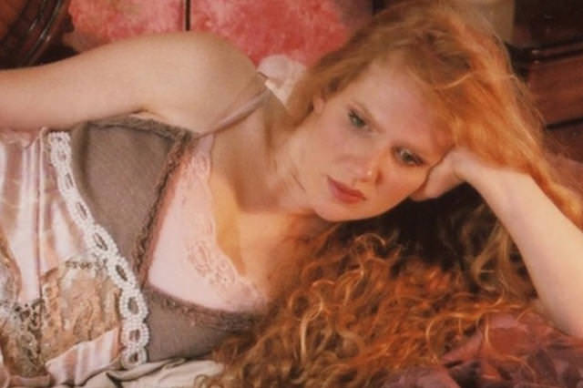 Perhaps it’s a close up of a painting of a person laying on a bed with a blue blanket on top of it and a pink blanket on the bottom of the painting.