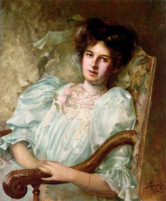 Perhaps it’s a painting of a woman in a white dress next to a tree with oranges on it and an orange.
