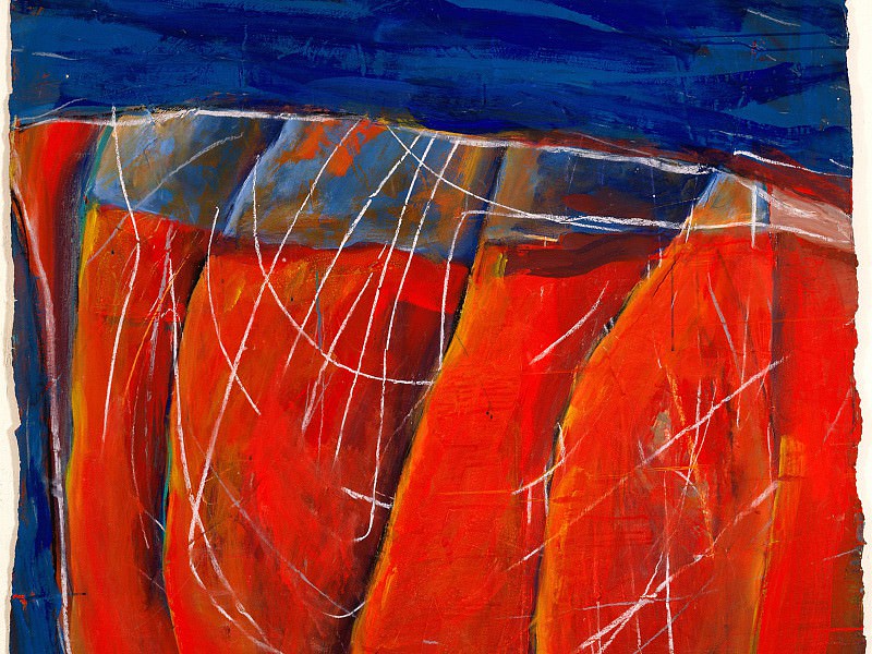 The application of paint is vigorous, with visible layering and impasto, suggesting a raw emotionality in the creative process. The red areas are particularly striking, appearing almost fiery, while the darker tones create depth and shadow, preventing the image from feeling flat.