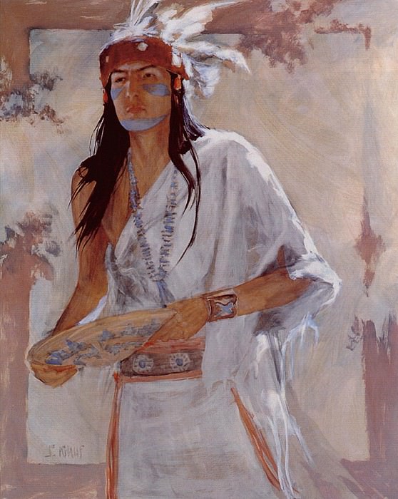 Perhaps it’s a painting of a native american man with feathers on his head and a feathered headdress.