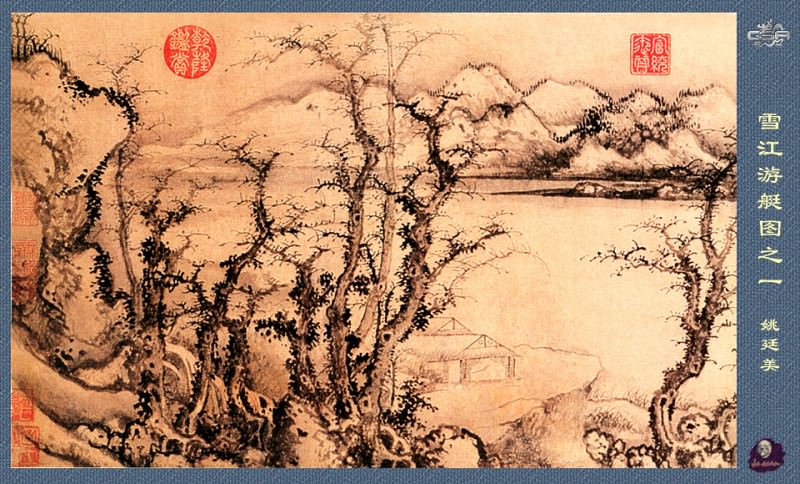 The composition is framed by calligraphic inscriptions and seals positioned along the right edge. These textual elements are integral to the artwork’s meaning, likely containing poetic verses or dedicatory messages related to the depicted landscape. The presence of multiple seals indicates a network of appreciation and ownership, common in East Asian art historical practice.